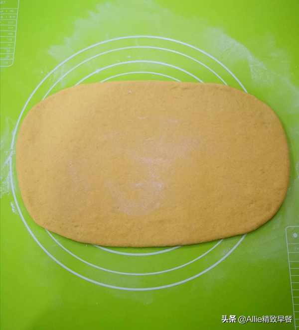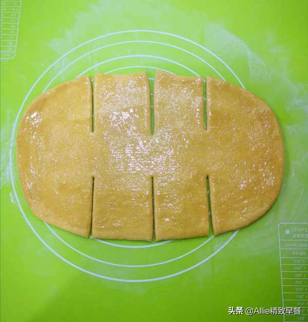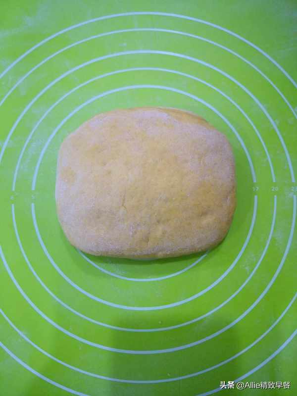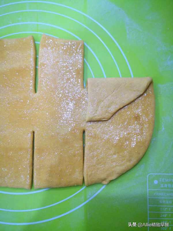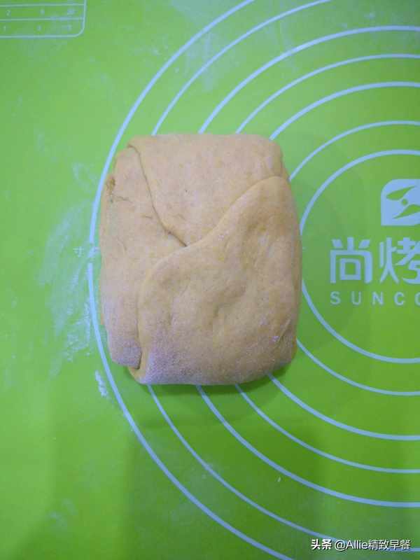 把最后一块面团擀开,对折,轻轻压一下,让面团粘得更牢。