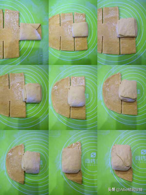 然后一一折叠,反复折叠,使成品层次丰富,口感好。