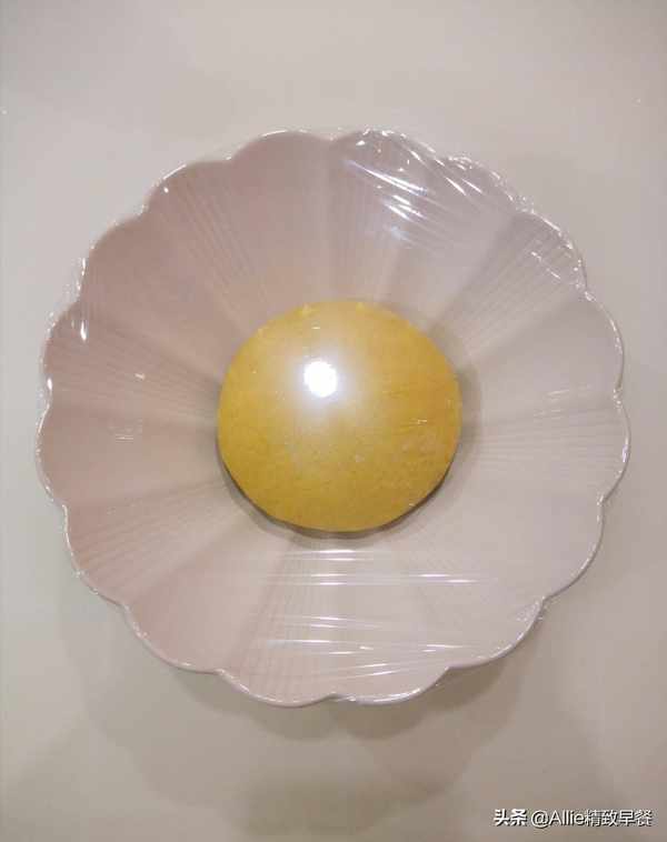 将面团加酵母水揉成中等硬度的面团,盖上保鲜膜发酵至两倍大。