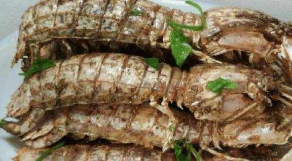 4、锅里留少许油,加入蒜末爆香后,将炸好的皮皮虾回锅翻炒几下,撒上少许椒盐、五香粉和白糖炒匀即可出锅。