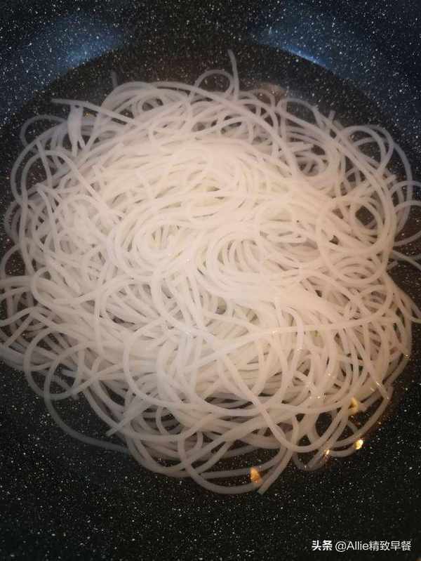 另起一锅,加入适量水,水开后倒入米粉,煮至米粉变软,没有硬核,捞出控水。