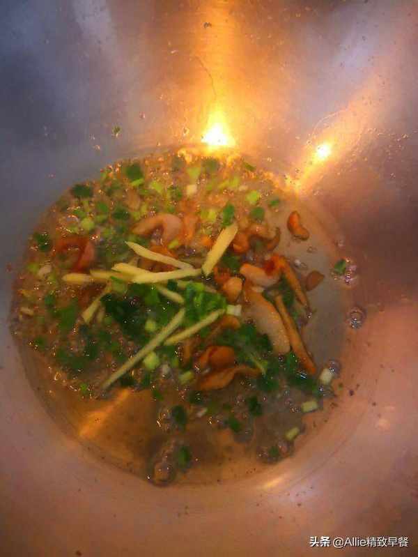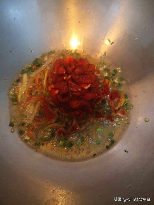 加入葱和姜,炒香。