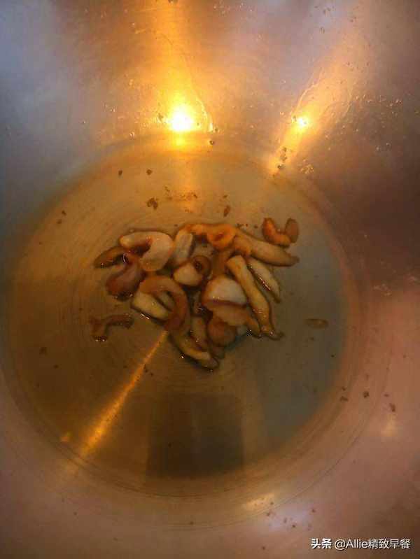 香菇泡软后洗净。