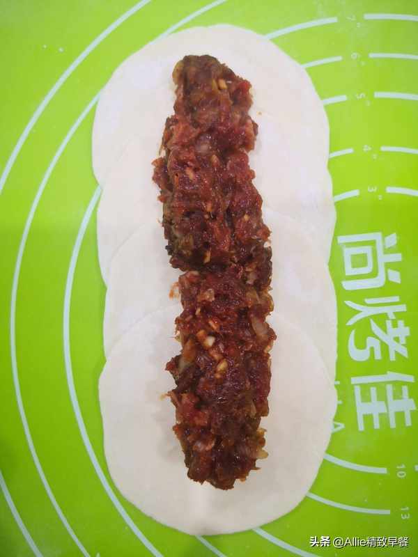 把肉馅放在中间。