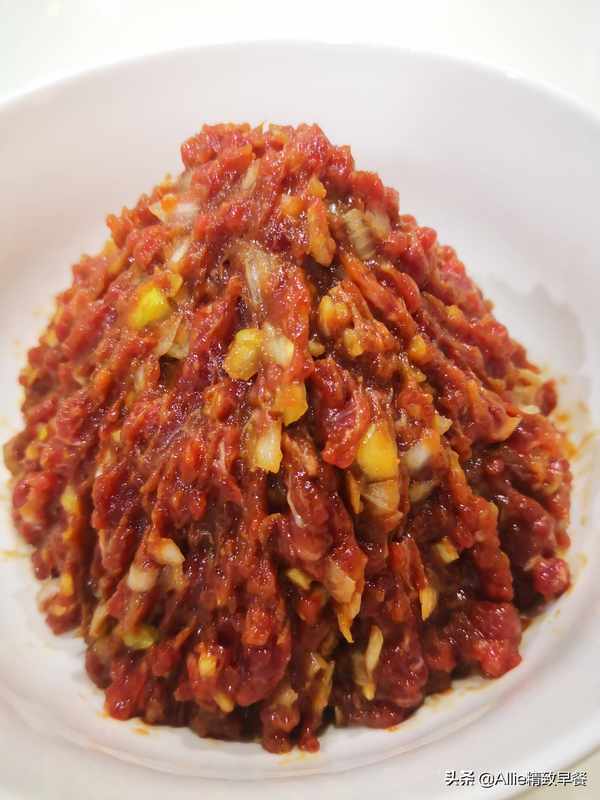 辅料:盐、老抽、生抽、食用油。实践:肉清洗干净后,放入绞肉机剁碎,葱切碎,加入适量的盐、老抽、生抽和姜末,拌匀,加少量水多次打匀将肉馅顺着时间的方向灌至肉质浓稠,加入适量的熟食油冷却后,拌匀,隔水腌制30分钟,这样做出来的肉质鲜嫩多汁。不老也不老。