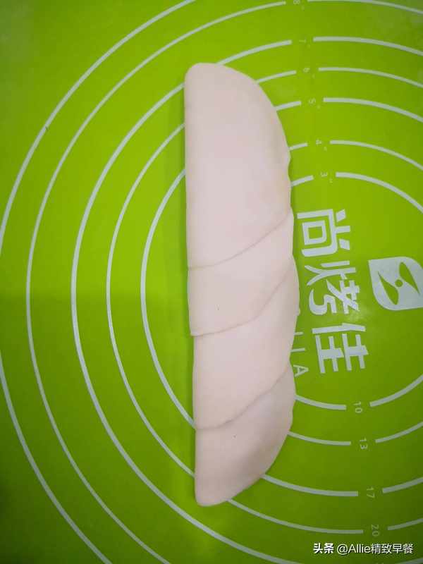 取四块面团叠起来,如下图。