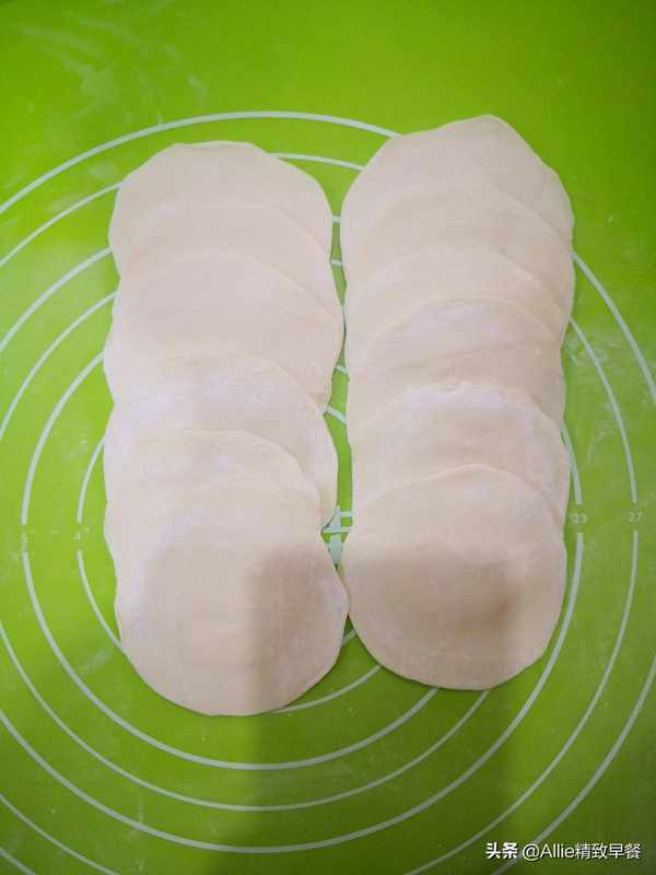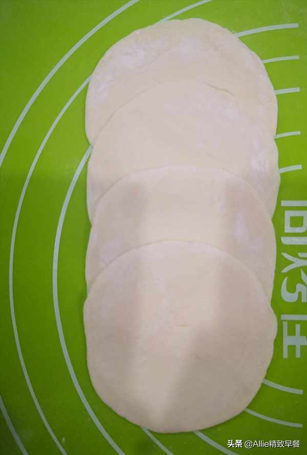 擀成与饺子皮厚度差不多的圆形面团。