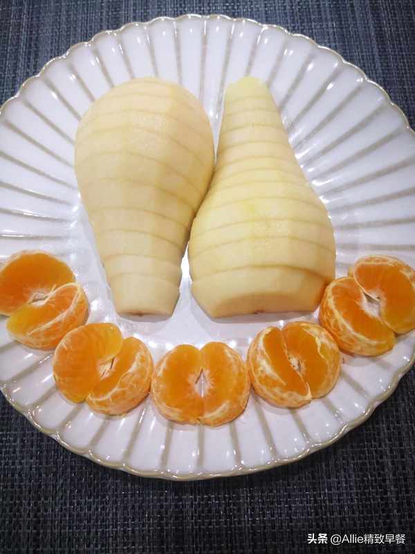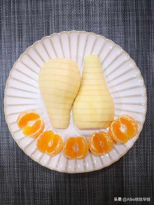 柔软香甜的梨子,甘甜多汁的橘子,简单的摆在盘子里,诱人又赏心悦目。