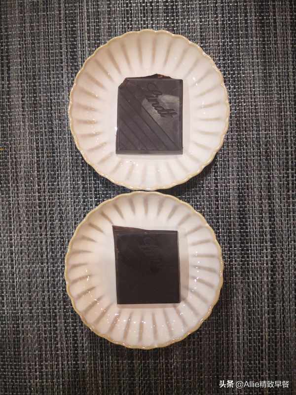 可可含量90%的黑巧克力每人一块,我比较喜欢90%到85%,比较顺滑。