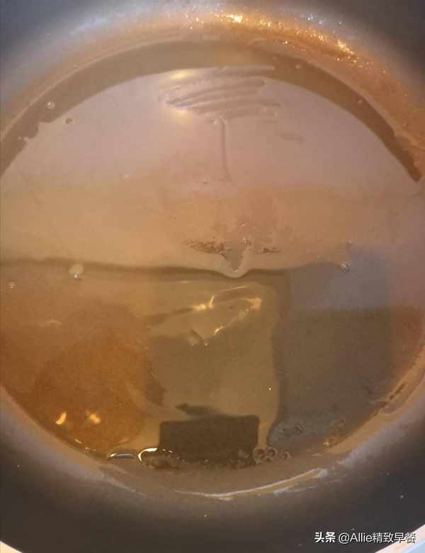 预热后在平底锅上涂少许油。