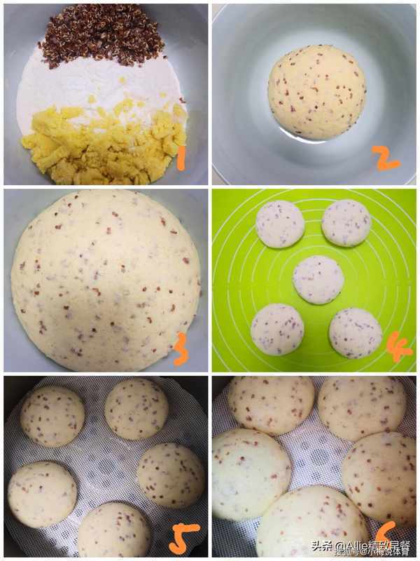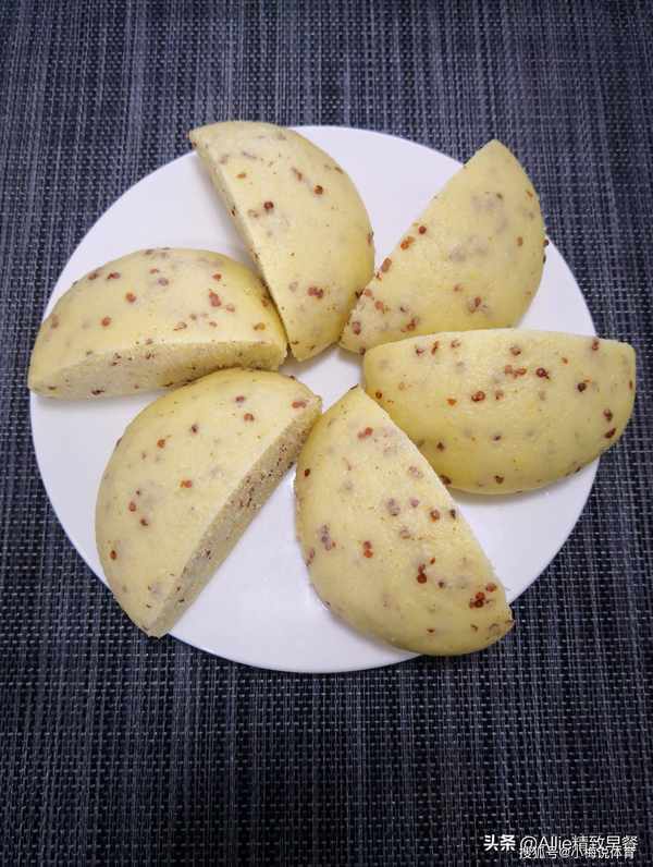 藜麦、玉米粉、多用途小麦粉、酵母。【实践】 1.藜麦煮熟后,捞出放凉,一半藜麦水重新烧开,用它烫玉米面,然后把玉米面烫成小疙瘩,另一半晾干至温热起来,加入酵母拌匀。将冷却的藜麦和蒸熟的玉米粉加入中筋面粉中,藜麦、玉米粉和普通小麦粉的比例为1:1:5或1:1:4。 2.将水加酵母和面粉的面团揉成软硬适中的面团。 3.盖上保鲜膜发酵至两倍大。 4、取出发酵好的面团,揉几次面团,排气后揉成光滑的面团,分成大小相等的小面团,揉成圆形。 5.将冷水倒入锅中,盖上锅盖,让它再次上升,直到它变得明显更大更饱满,大约需要15分钟。 6、二次发酵后,开大火蒸15分钟左右,关火小火焖5分钟。玉米蓬松柔软,香甜可口,比纯白面粉做的馒头好吃多了,而且营养丰富。
