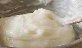 将盘子放入蒸锅,冷水开始蒸,大火约15-20分钟,蒸熟的米浆盘取出,用筷子大力搅拌均匀即成麻糬皮