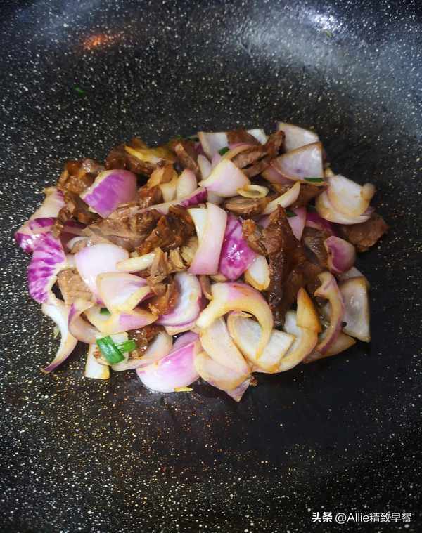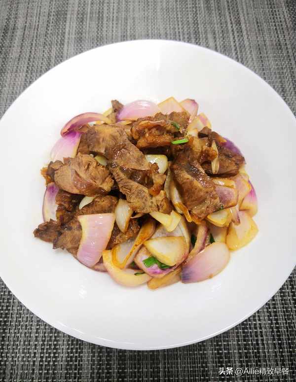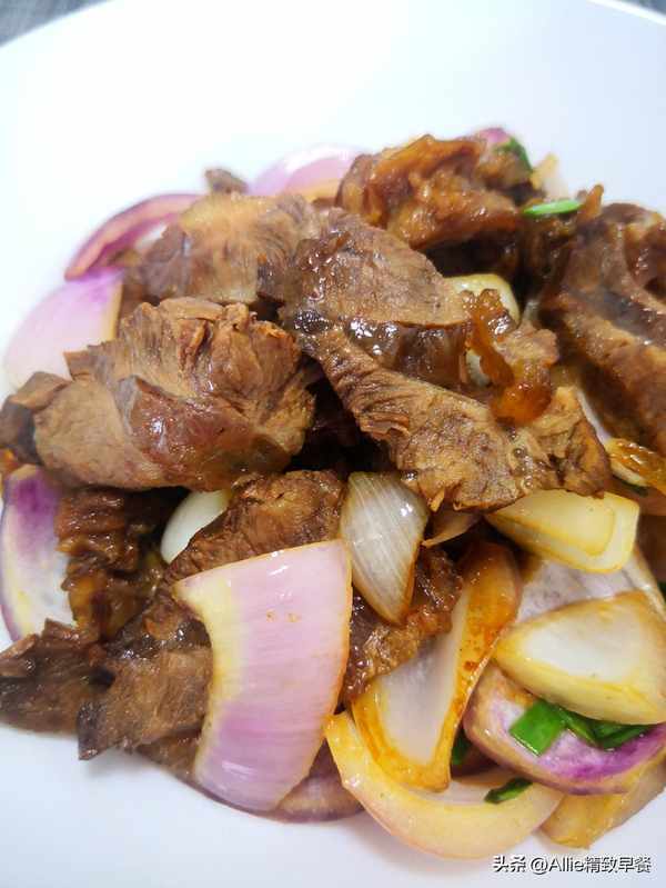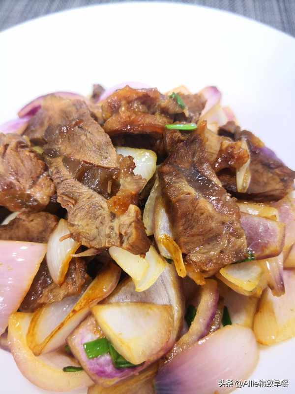 炖肉加葱炒,荤素搭配,口感丰富,营养丰富。