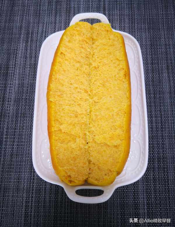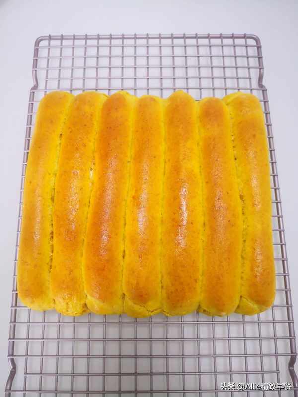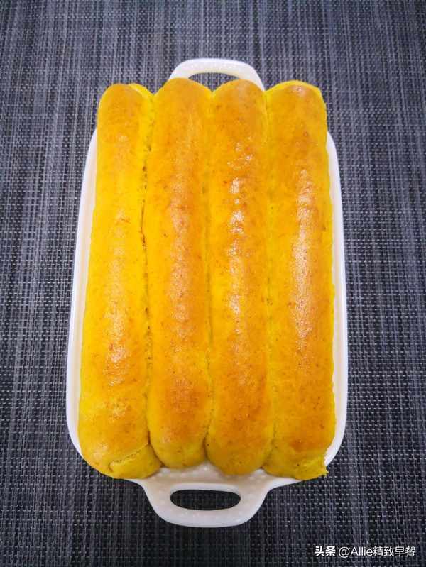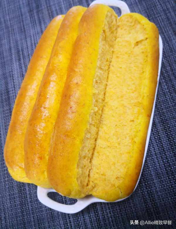 趁热吃,外脆里软,用胡萝卜泥做面包,既增色又增加营养。