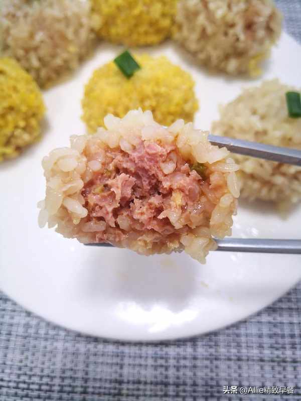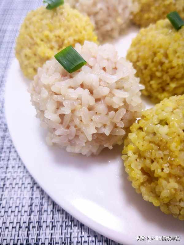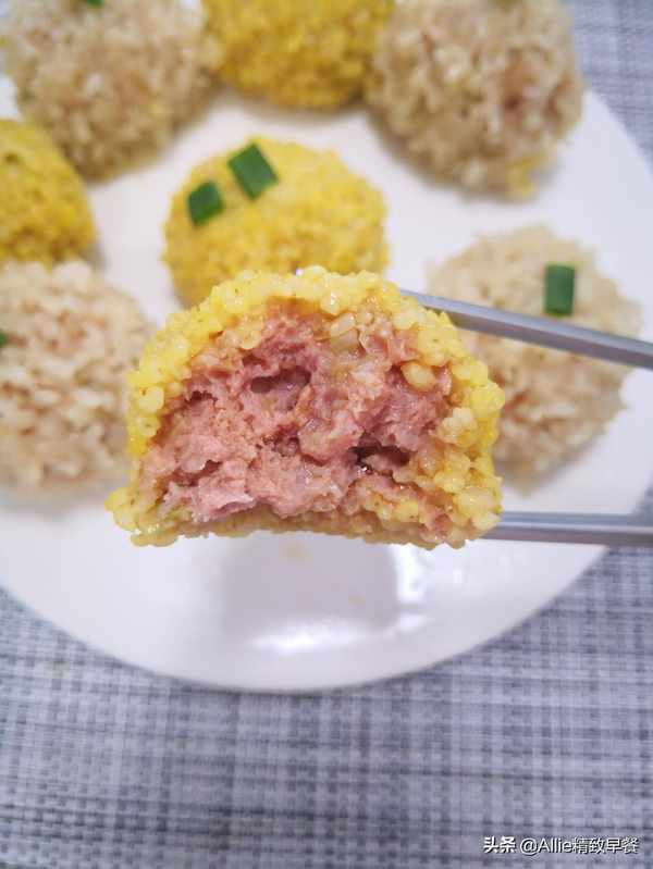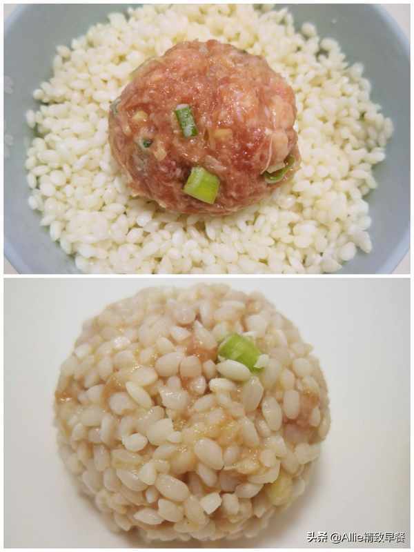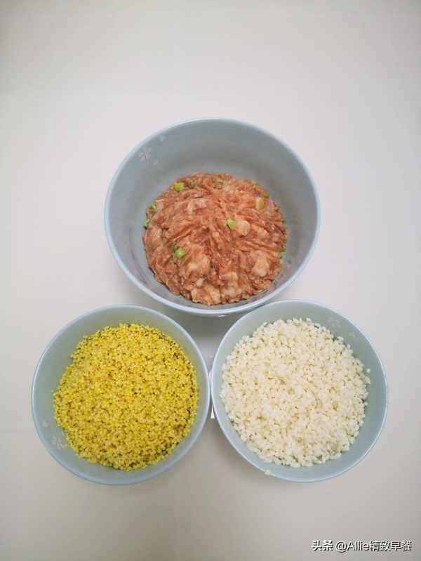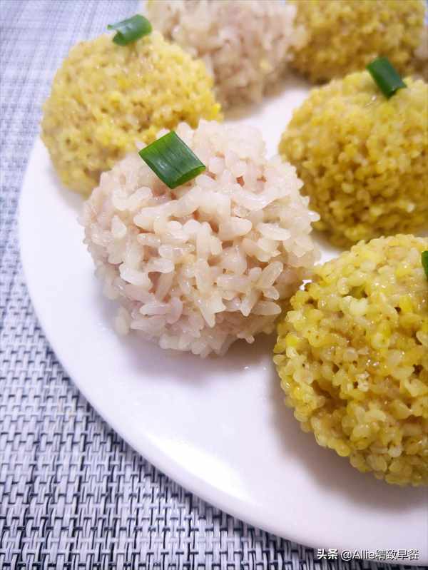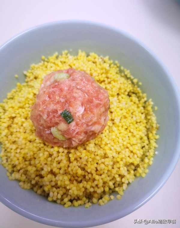 原料:大黄米、糯米、肉末、葱、姜。调料:盐、酱油。【实践】肉末加入盐、生抽、葱、姜拌匀。一边多次加入少量冷水,一边将肉末顺时针打至肉质紧实,腌制20分钟。大黄米和糯米分别洗净,然后分别用冷水浸泡一夜。浸泡后,大黄米和糯米应该沥干。浸泡后,它们很快就熟了,而且又软又粘,更容易消化。