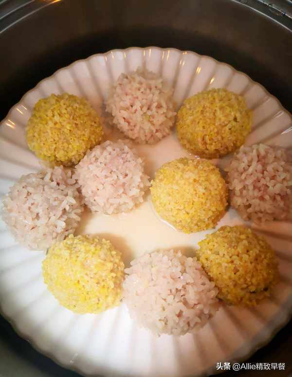 蒸的时间要根据丸子的大小稍微调整一下,直到米粒饱满,充分开花。