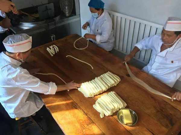 面粉、毛棉籽油和白芝麻,加上代代相传的好手艺,经过培养酵块、掺水和面、按比接面、分割面块、反复揉面、匀揪面节、面节擦油、卧缸存放、分板打畦、搓条上劲、扭股成形、入锅油炸……足足18道工序,人们才能吃到“咸香爽脆、好吃不腻,色泽金黄、形如蟠龙”的稷山麻花。