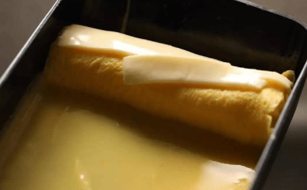 第四步:鸡蛋卷好后开小火,继续倒入第二层蛋卷。中间不需要加油,只需要一点基础油。在里面加入一点奶酪。你可以加入海藻,肉末,任何你喜欢的东西。