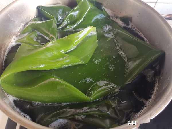 把买来的海带放入到锅里,煮开,海带立刻就会变成碧绿色的。如果卖的新鲜海带是碧绿色的,就肯定是处理过的了。新鲜海带一定就是棕色,每年春天都会上市,也是我家吃得比较多的一种保健蔬菜。