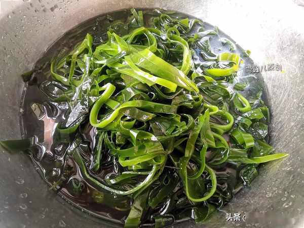 2,如果没有新鲜海带,干海带的处理就会复杂一些,干海带浸泡开,放在笼屉里隔水干蒸半小时左右,然后再用清水浸泡一夜。用这种方法处理后的海带又脆又嫩,用它来炖、炒、凉拌,都柔软可口。