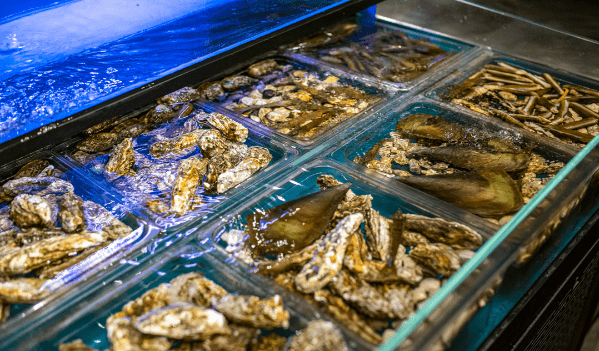 此外,野妹还顺应了火锅+万物的热点,巧妙用铁板烧加入火锅业态的赛道。如果说火锅是喧嚣热辣的,那么同样“热情奔放”的铁板烧绝对是火锅聚餐时的好搭档。起家于深圳的野妹火锅,借助临海优势,使得生蚝、扇贝、虾等这些海淘爆款都能快速登陆店中,消费者在超市挑选好自己喜欢的海鲜食材,结账后便能拿到旁边的铁板加工区免费烹饪。一边涮着火锅,一边吃着外层焦香脆口的煎牛排,鲜味在口腔中溢满,感受味蕾的双重刺激,吸引了众多消费者前往体验。