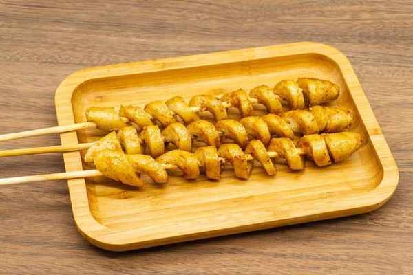 2、烤面筋:将面筋切成块状,在烤架上烤至金黄色,再涂上蜜糖、糖浆等调料,最后撒上芝麻和花生碎即可。烤面筋的口感酥脆,外焦里嫩,甜香可口,是许多人喜欢的小吃之一。