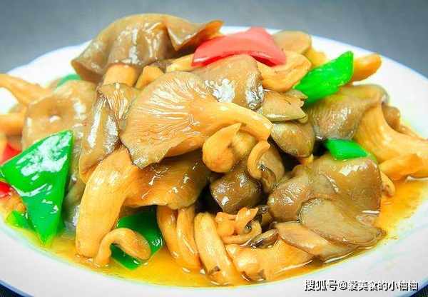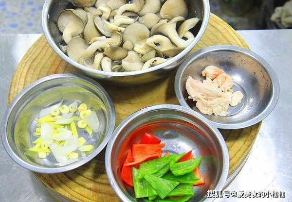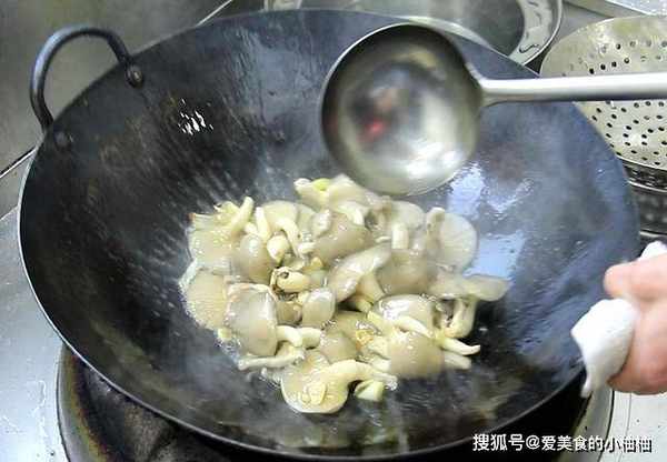 锅内加一点底油,把肥膘肉放入锅中煸香、煸出油脂,煸出的油渣可以丢弃,也可以直接配着菜一起炒,把葱姜蒜倒入锅中爆香,加入蚝油5克搅拌化开,倒入平菇吸收蚝油的鲜味,再淋上点老抽上色,把颜色炒均匀。