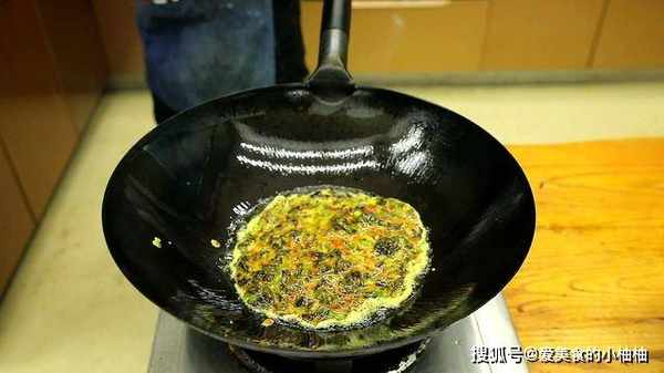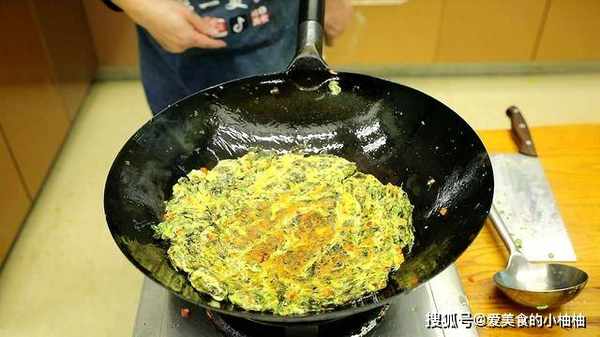 热锅凉油,把蛋液倒进去,摊成蛋饼。用平底锅的话,会更好操作。沿锅边淋点油,方便脱离。经常的摇晃锅,这样受热才均匀。