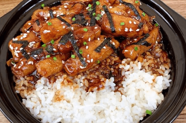 第三步:用勺子将酱汁均匀地倒在鱼身上,用小火慢慢收集酱汁。收到果汁后,将龙鱼切成块,放在米饭上。最后,撒上一些葱花和切碎的海藻。