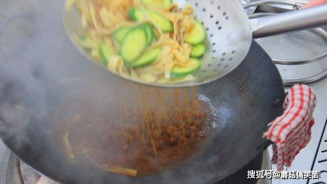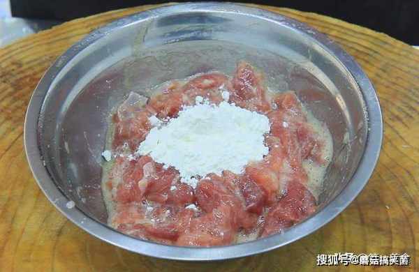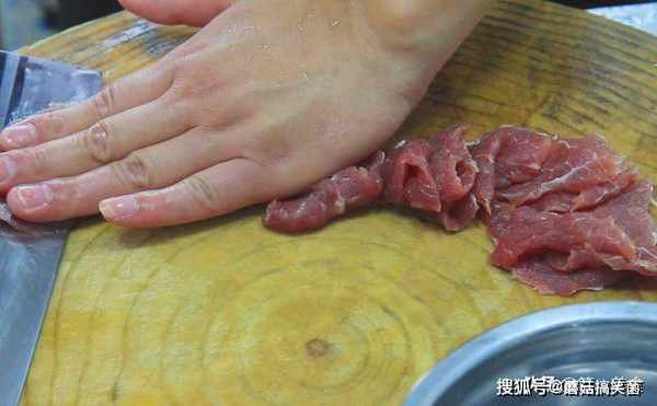 然后一起捞出放在盆中垫底,接着下入腌制好的牛肉片。