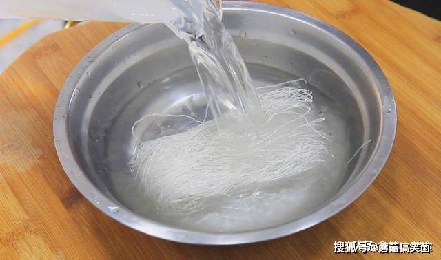首先我们准备一下食材:干粉丝一把,倒入清水泡发。
