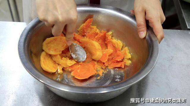 2.10分钟以后红薯已经蒸至软烂,取出放在盆中,
