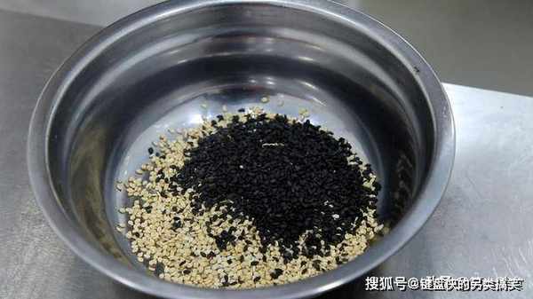 准备一个小盆,倒入生的白芝麻和黑芝麻