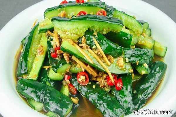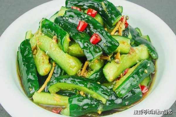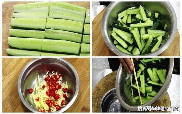 ,这一步是为了给黄瓜出水,让盐味渗入进去。生姜一小块,切成细丝;大蒜几粒,拍散后切成末;小米椒几个,切成小段放在一起备用。