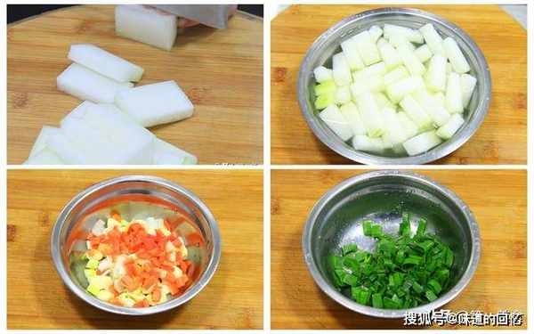 ,然后把冬瓜切成小块 ,放在水中用清水浸泡。