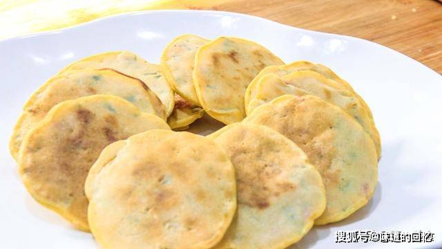 小火烙一分钟左右,玉米饼边缘变色时翻面,翻过来之后再烙一分钟,另一面定型后再次翻面,来回多翻几次,