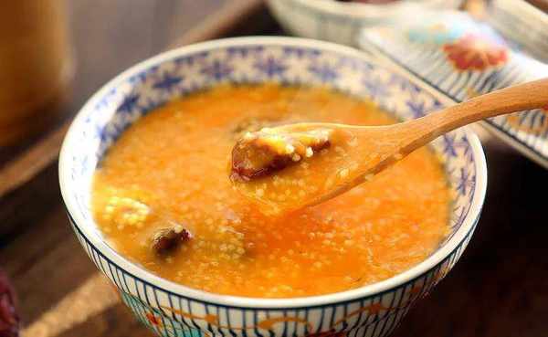 做小米粥的时候,加点南瓜和红枣。煮熟的小米粥不仅金黄诱人,而且更香甜更有营养。