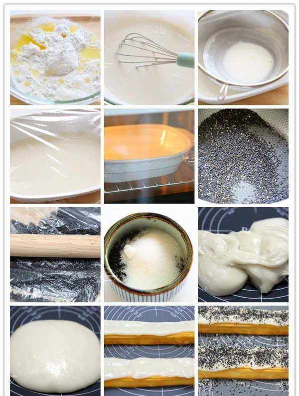 原料:油条数条,糯米粉100克,白糖30克,生粉20克,玉米油20克,纯牛奶130毫升,黑芝麻20克