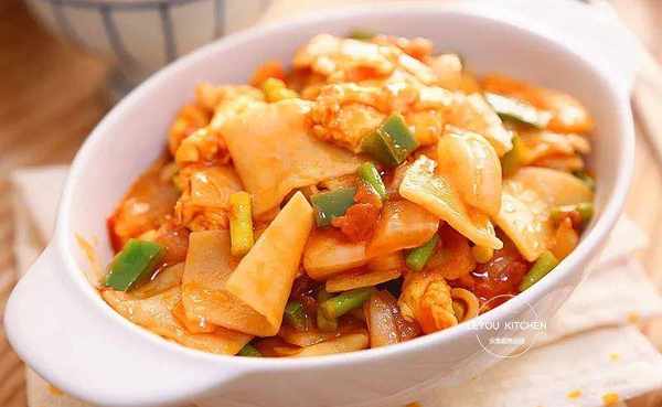 材料:饺子皮300克、西红柿1个(小的两个)、洋葱半个、青椒1个、蒜苔一小把、鸡蛋2个、葱少许