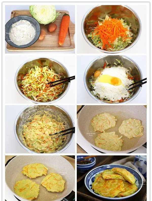 1、卷心菜和胡萝卜要切得越细越好。