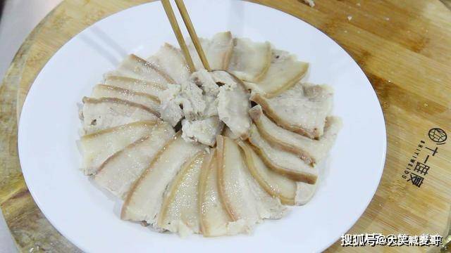 再把肉捞出过凉水,反复冲洗。然后把肉切成薄片。