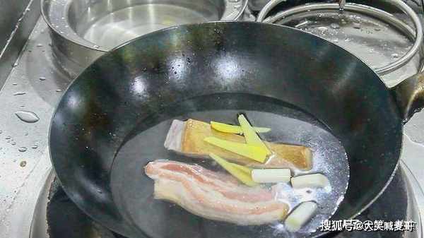 锅内烧水,冷水放入五花肉,放入葱,姜,料酒,利于料酒挥发的特性减少猪肉的腥味,生姜同样有着去腥增香的作用。