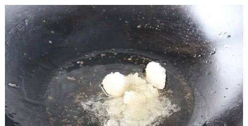 2、锅里倒入油,油温不是很热的时候加入糖,小火慢慢炒糖;