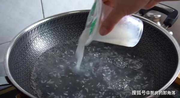 7、接着烧开半锅热水,放入少许砂糖,倒入一杯甜米酒。