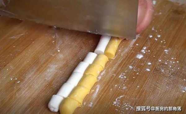 6、双色面团合在一起,一起搓成拇指头大的小团子,双色丸子就做好了。不需要在中间放入馅料,这样的小丸子做出来就很好吃了。