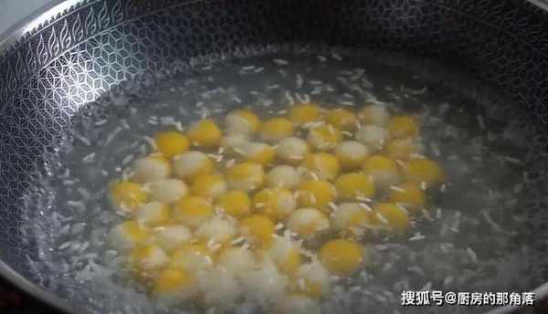 9、双色丸子浮在水面,就表明煮熟了,可以捞起来了。