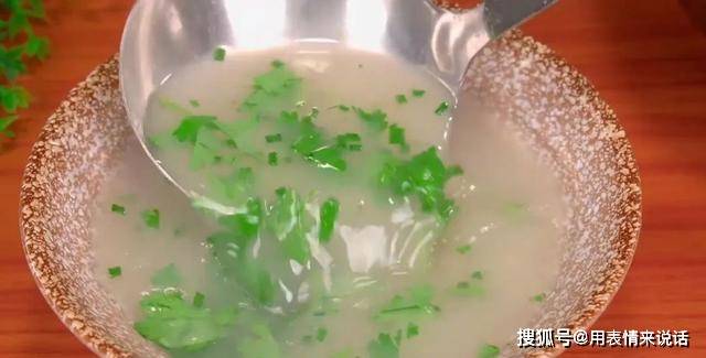 9.再调一个羊汤,碗中加一勺食盐,一勺胡椒粉、一小把葱花香菜,浇上炖羊肉的羊汤,汤鲜味美的羊肉汤就做好了。