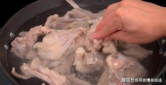 4.羊排泡好清洗干净,冷水下锅焯水,大火煮开后转小火继续煮5分钟,撇去浮沫,捞出用温水洗净备用。