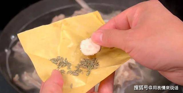 6.接着放入1片白芷,一小撮小茴香,几片生姜,开小火慢炖一小时。