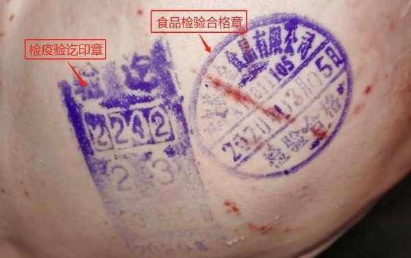 以前有种说法,蓝印是公猪,红印是母猪,这是错误的。印章的颜色有很多种,除蓝、红、绿、紫等外,但颜色不同,寓意相同。只要是圆形印章或滚筒印章,无论用哪种颜色,都是合格的猪肉。